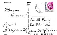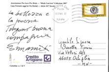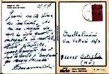 Allegai a quello scritto una musicassetta dove erano registrate alcune canzoni: prove che avevo fatto con Mauro Conforti. Aggiunsi alcune fotocopie di miei disegni e il volumetto di poesie “Ci vorrà silenzio”, da poco pubblicato. Spedii il tutto e dopo pochi giorni mi arrivò una sua cartolina da Asiago.