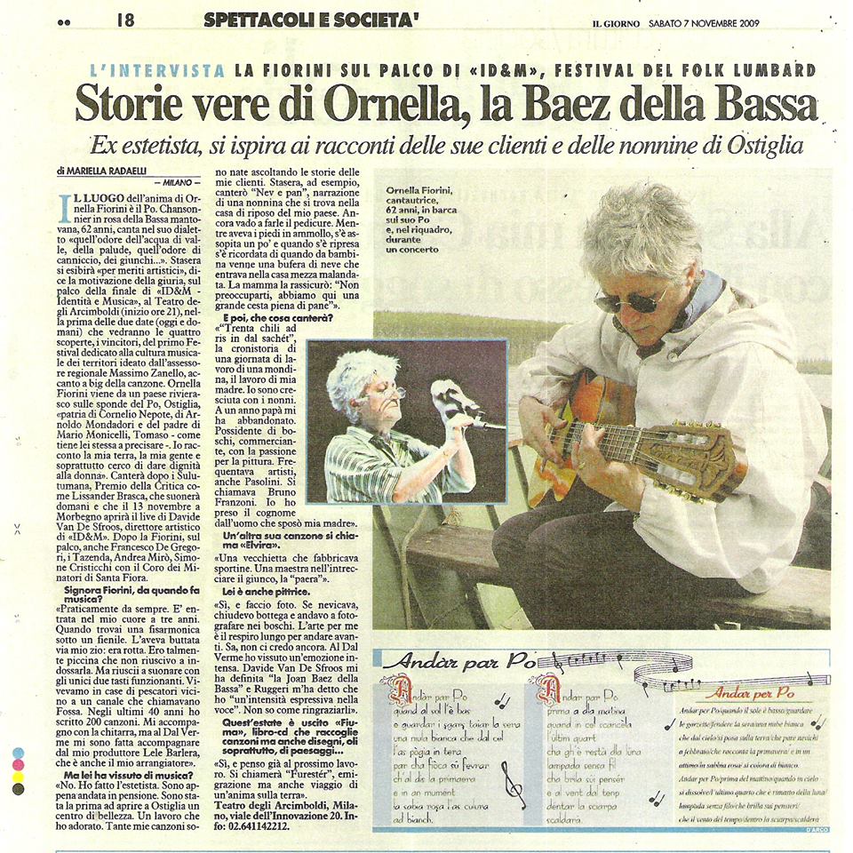 Con la premiazione in programma il 15 ottobre 2009, alle ore 18.00, presso il Teatro Dal Verme di Milano, Ornella Fiorini parteciperà quindi a “ID&M Lombardia”, il primo festival dedicato alla cultura musicale territoriale, dove si esibiranno 12 voci lombarde tra solisti e band emergenti.