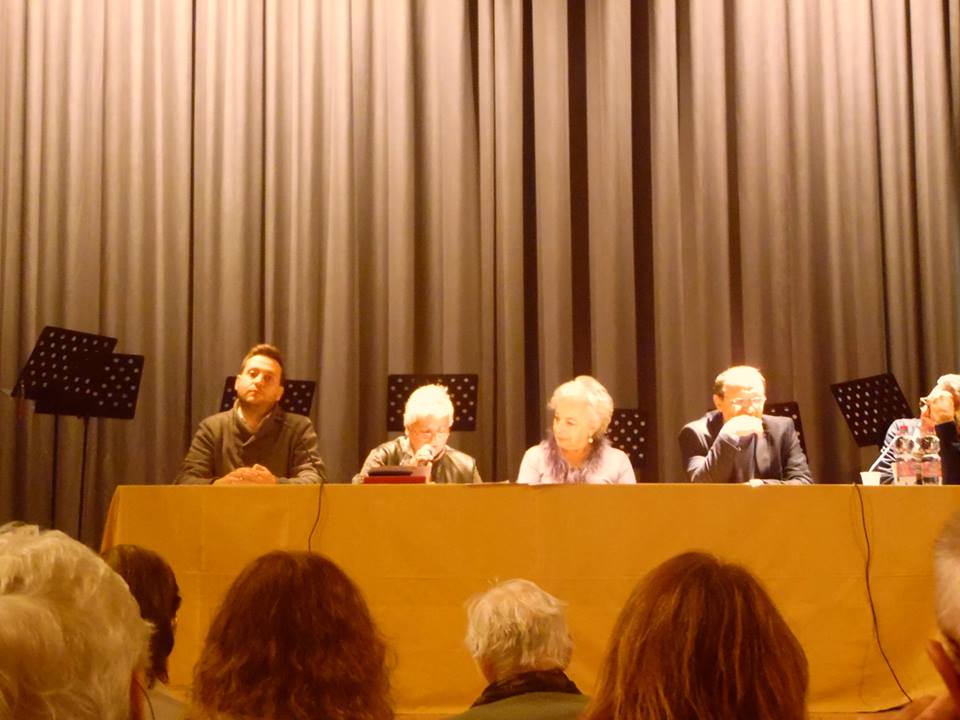 Ornella Fiorini al tavolo della Giuria mentre legge la poesia vincitrice “Ch’lì fragolini”